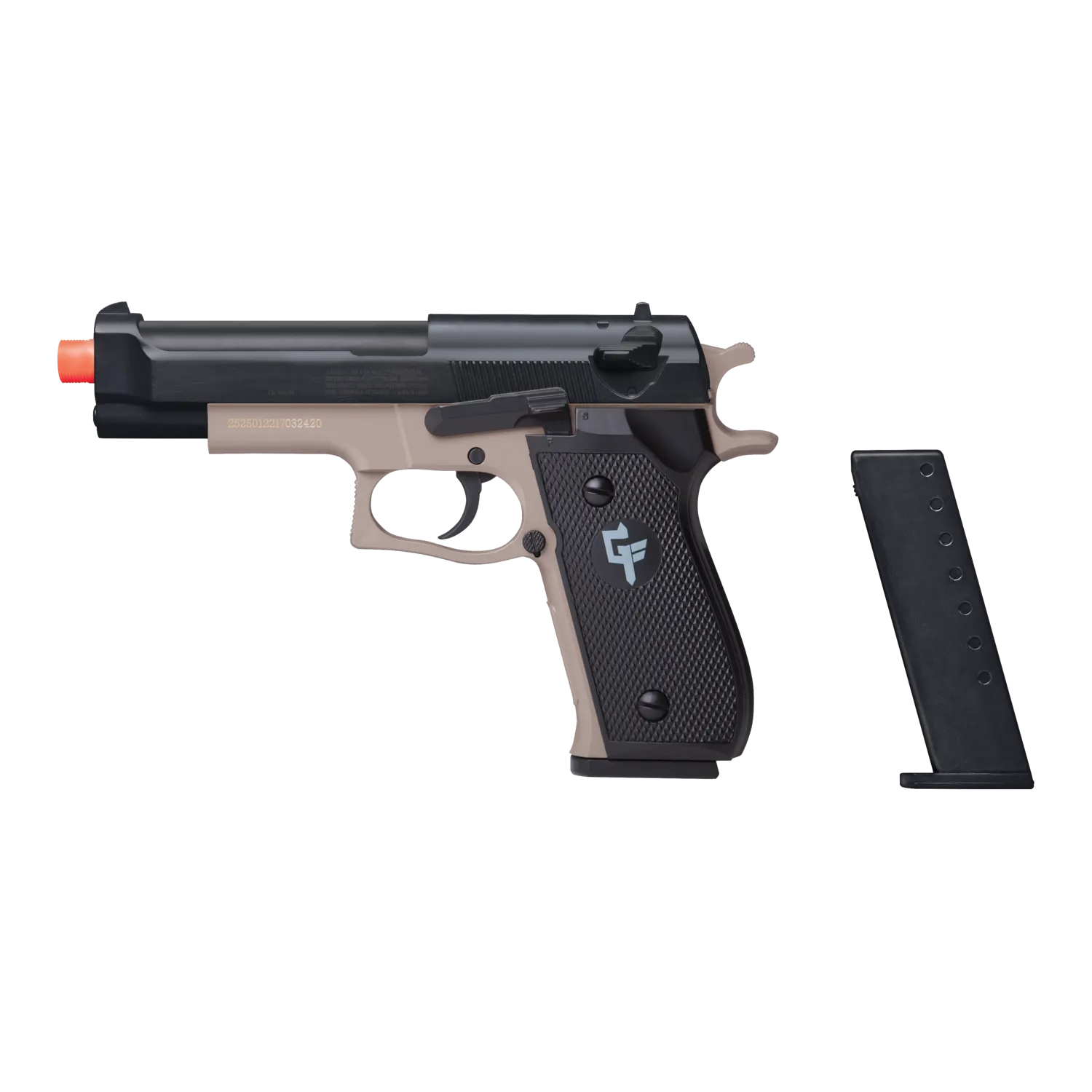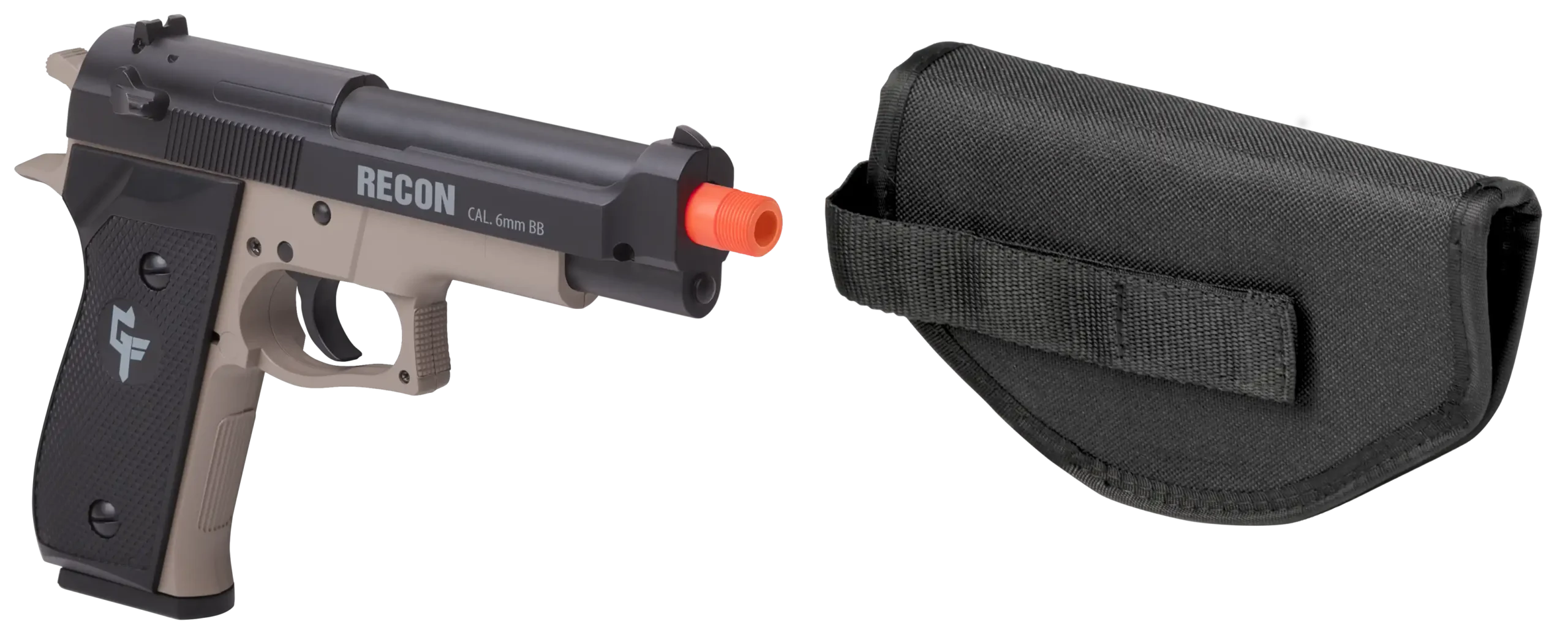 The Game Face spring airsoft pistol is built for straightforward training, controlled practice, and casual backyard play. Designed for reliability and ease of use, the Recon Kit delivers a simple spring-powered platform that’s always ready—no batteries or gas required.